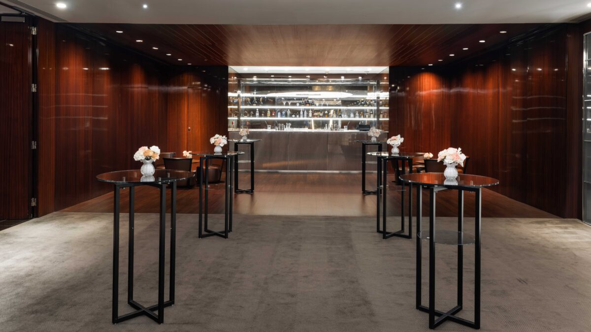 The space features cutting-edge lighting and audio technology, including a Bose loudspeaker system for ambient music, as well as specialised audio-visual equipment upon request, including virtual studio and hybrid meeting solutions. Connecting with The Ballroom, the Ballroom Foyer offers a smaller space with a sleek steel, glass and mirror bar, and the same audio capabilities as The Ballroom.